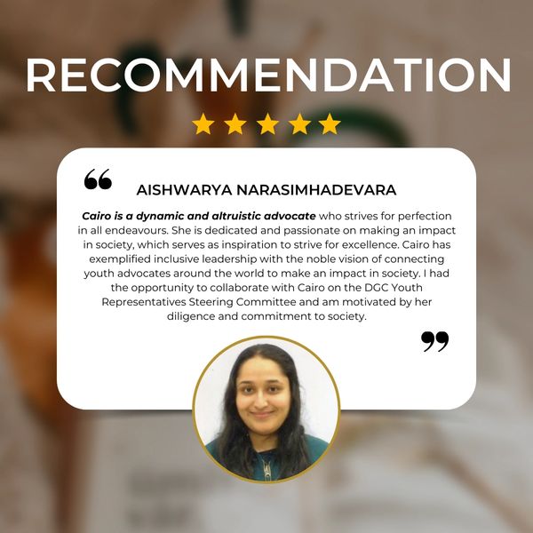 "Cairo demonstrated a commitment to our school's mission to break the cycle of poverty in India through education. She taught 9th grade literature, 3rd grade computers, and several other classes where she showcased her ability to engage with and empower youth, even coordinating a weekly public speaking workshop with the 9th graders whee students were given the opportunity to practice writing and delivering speeches in a supportive and encouraging setting. In the classroom, she used innovative resources to keep students engaged, and sought to link discussion to real-world issues, such as discrimination and prejudice." --K.Y.